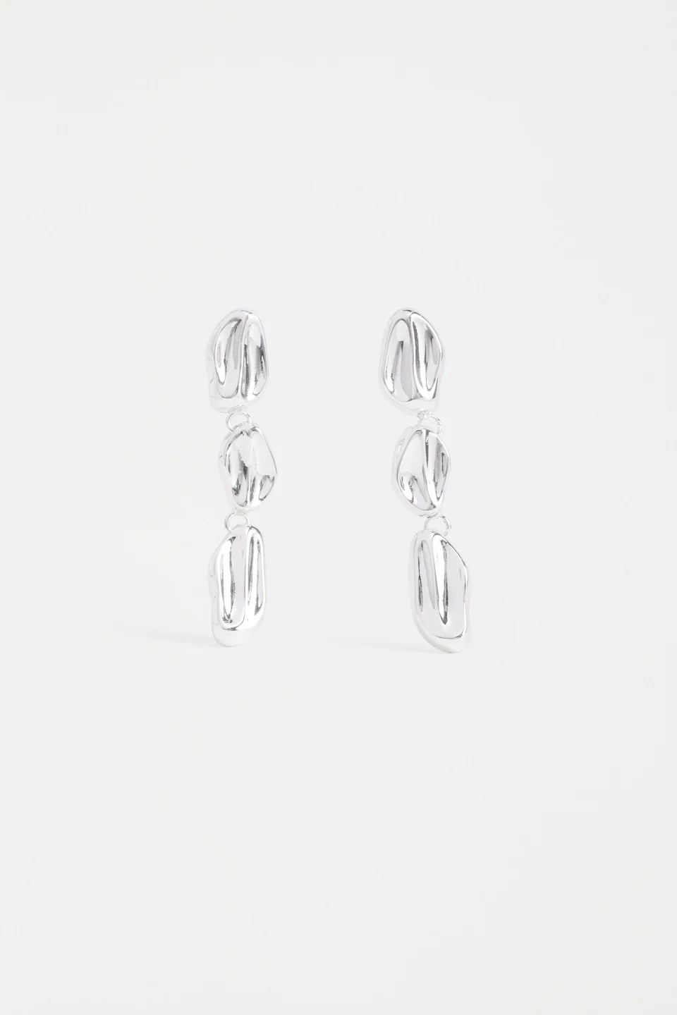 The Delaa Drop Earrings are the perfect pair to add a touch of luxe sophistication to your outfits. Comprised of three rounded sculptural shapes joined via jump rings, creating beautiful movement with its organic forms. The long drop length adds a touch of glamour to your day-to-night outfits. Pairs perfectly with Dalen Bangle for a complete sculptural metallic look.