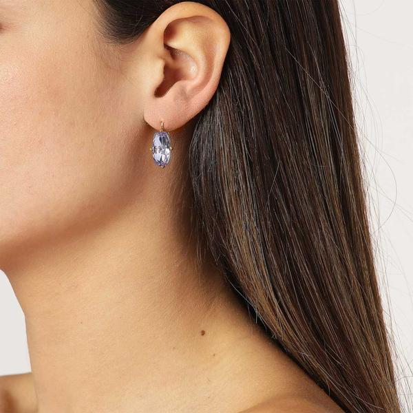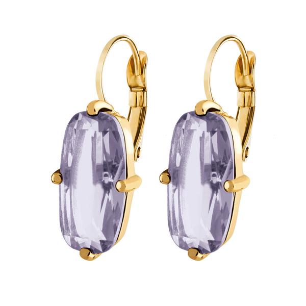 BARITA - Classic french hook earring with a rectangular facet cut crystal stone handset into the setting. Wear day or evening, a truly versatile piece. Here shown in a lavender crystal and gold-tone version. Danish design, nickel free.