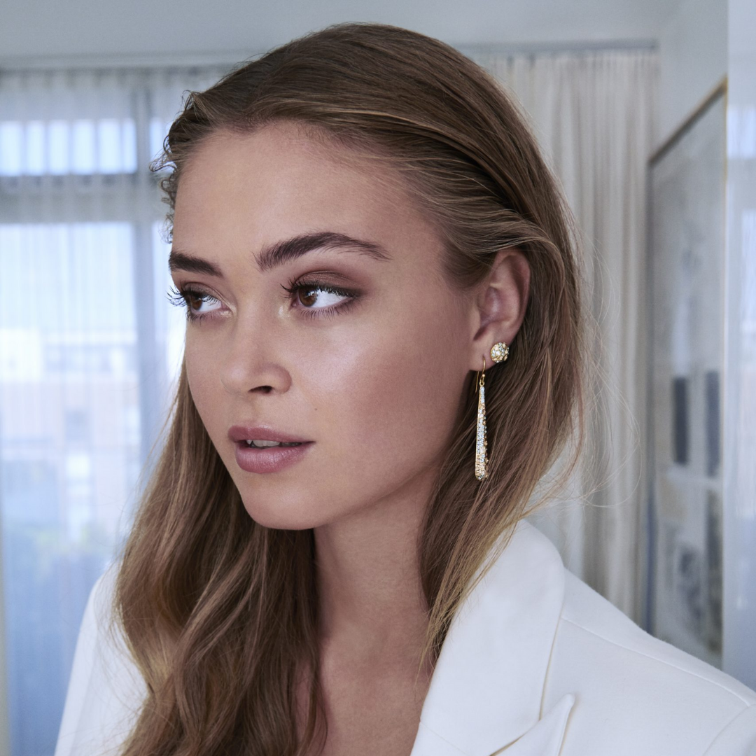 BLAZE is the stand-out statement earring of the Oriental collection. The elongated tear drop shaped earring is encrusted with shimmering crystals creating a look of easy elegance and sophistication.