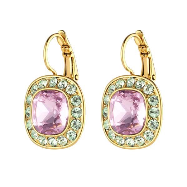 CELIN - A French hook earring in brass - the hook is made in surgical steel - the centre is a cushion-cut crystal - bordered with a row of handset crystals. 2cm long.