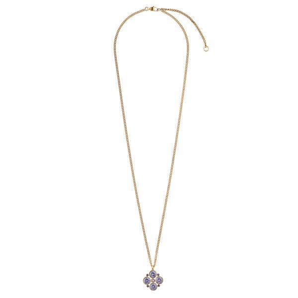 MAUDE is a dramatic pendant necklace in a stainless steel chain. The large floral pendant motif features multiple Swarovski crystals, here shown in elegant lavender and violet crystals on a gold-tone metal finish. Great for the parties in the winter. Danish design, nickel-free and handmade. 40 cm + extension chain.
