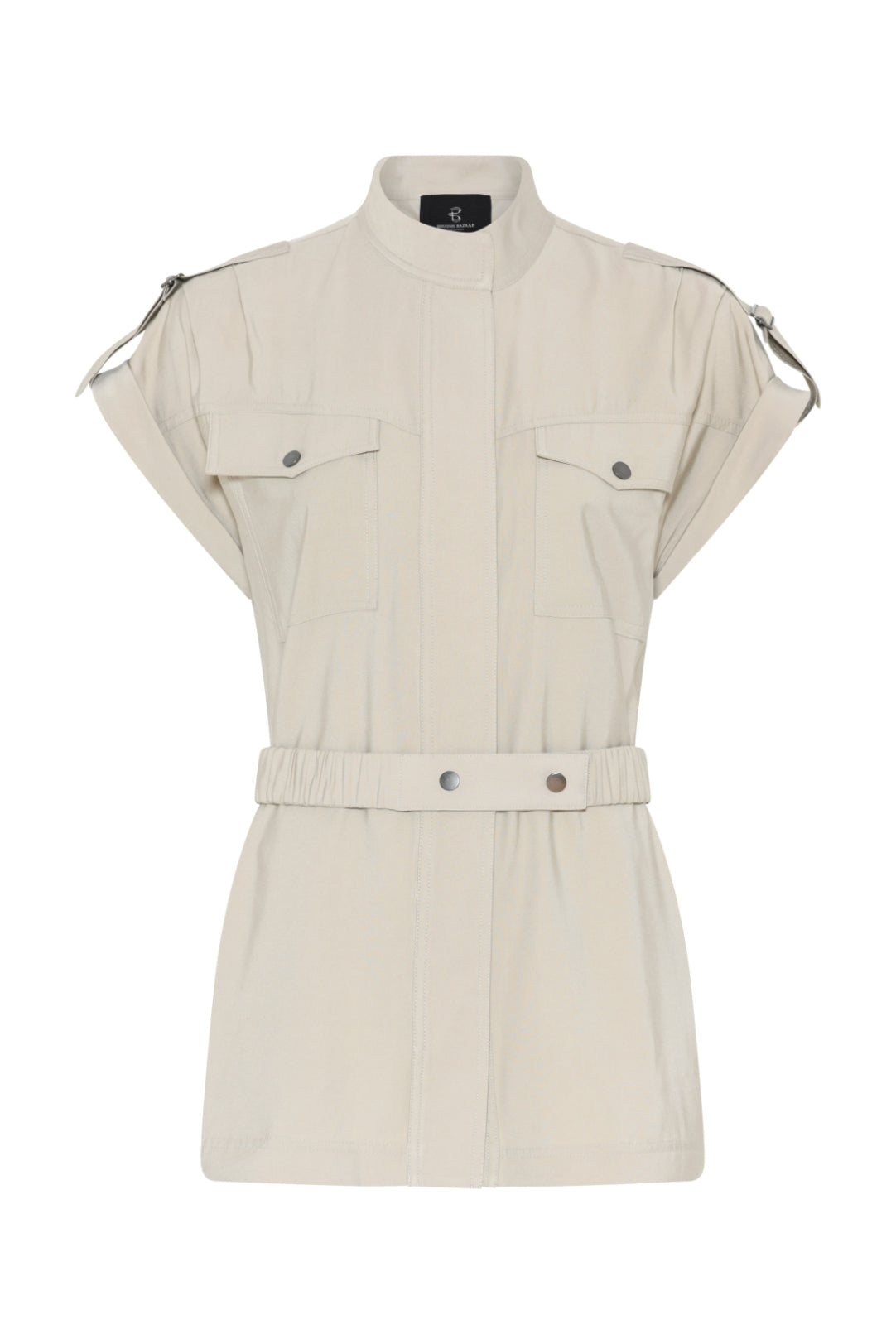 Utility-inspired shirt with a modern and sophisticated expression, designed with chest pockets, elastic belt, and shoulder details. The shirt accentuates your waist with a belt and provides a structured look.